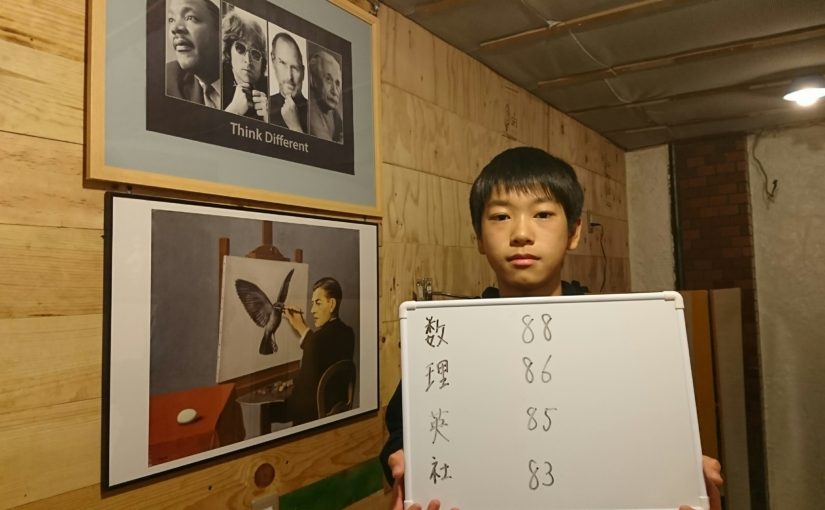 数学88、理科86、英語85、社会83点!